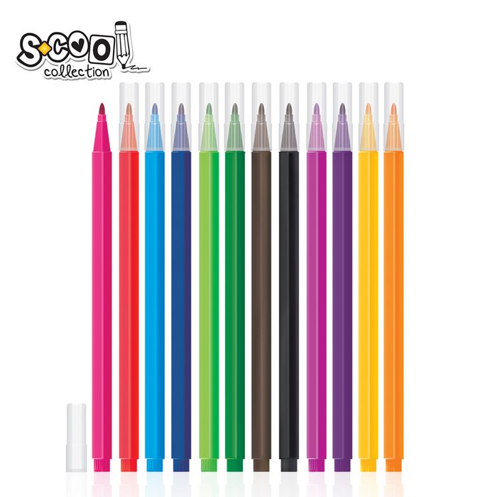 Flomasteri trouglasti SC306 je set od 12 školskih flomastera ergonomskog dizajna trouglastog oblika kako bi se spriječio zamor ruku i otkotrljavanje flomastera sa stola. Flomasteri imaju formulu mastila na bazi vode, što je najbolja opcija za djecu i učenike
